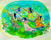 Medium is watercolor, colored pencil, oil pastels on Arches hot press watercolor paper.